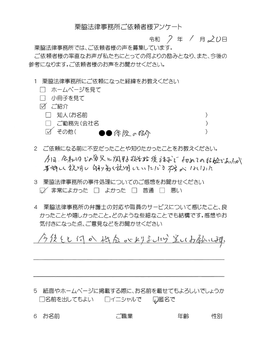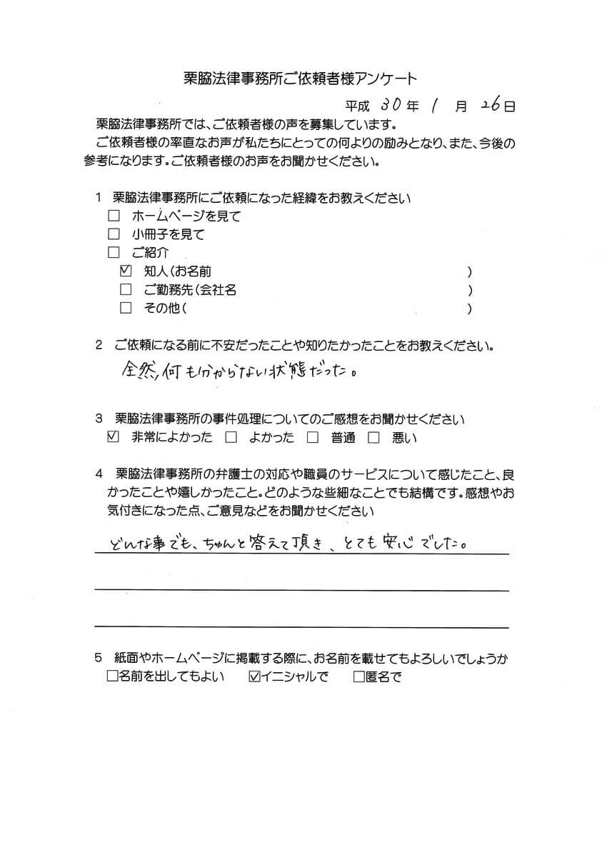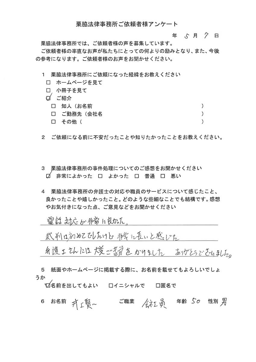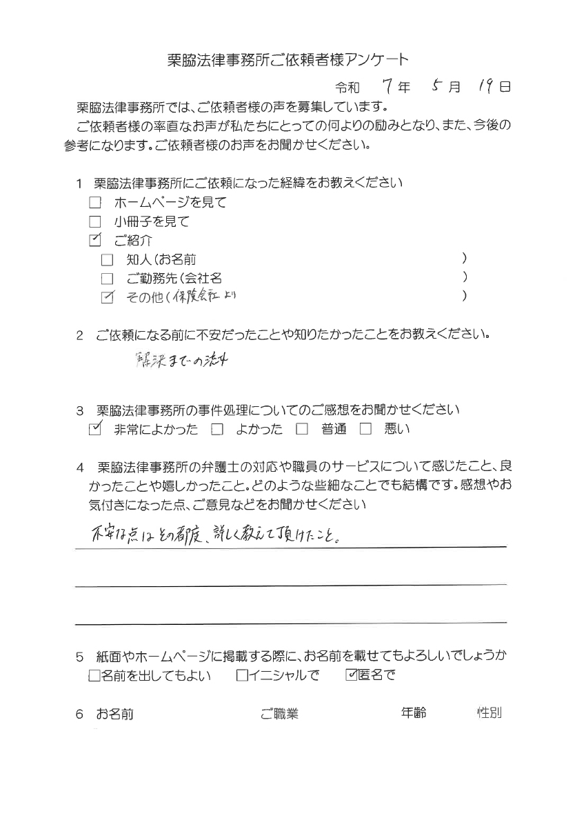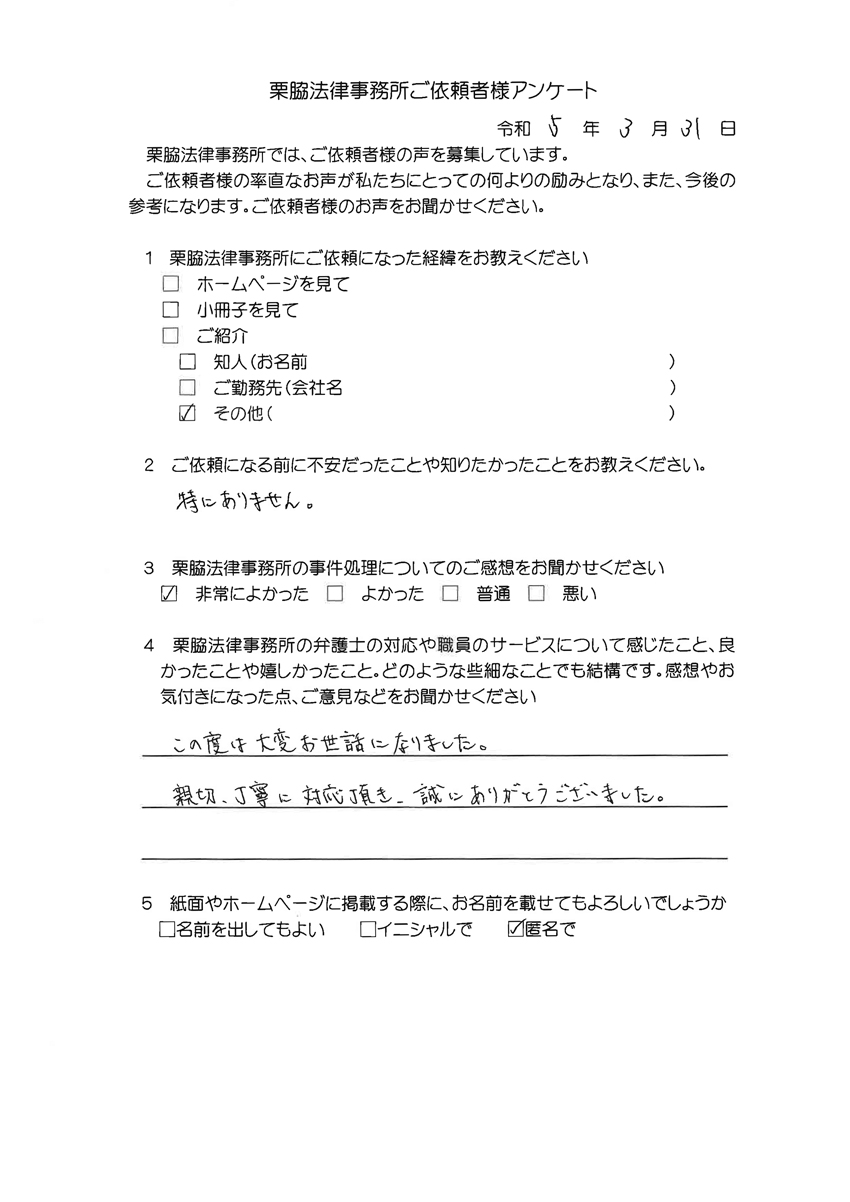 栗脇法律事務所へご依頼されたお客様から頂いた声を一部ご紹介いたします。