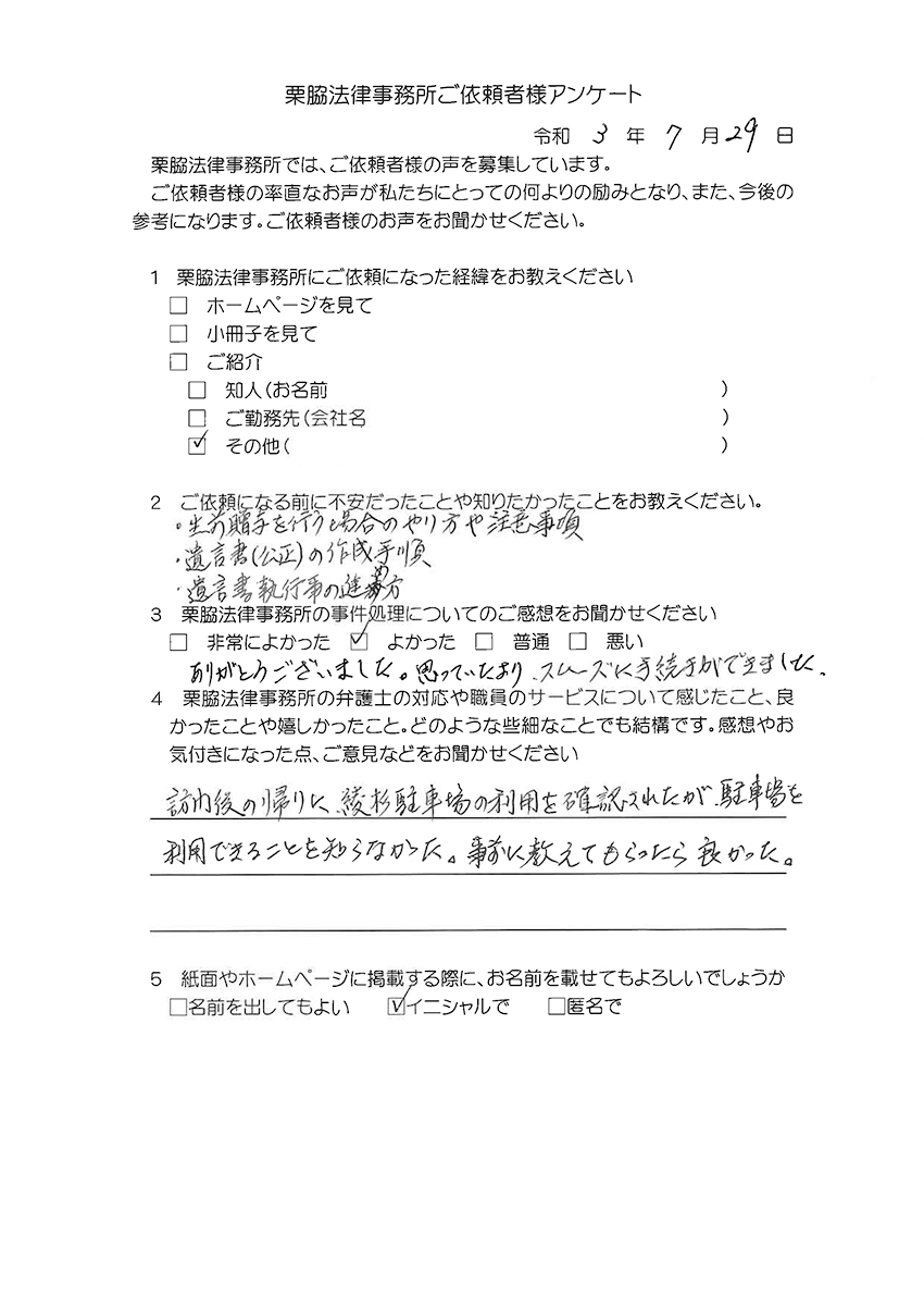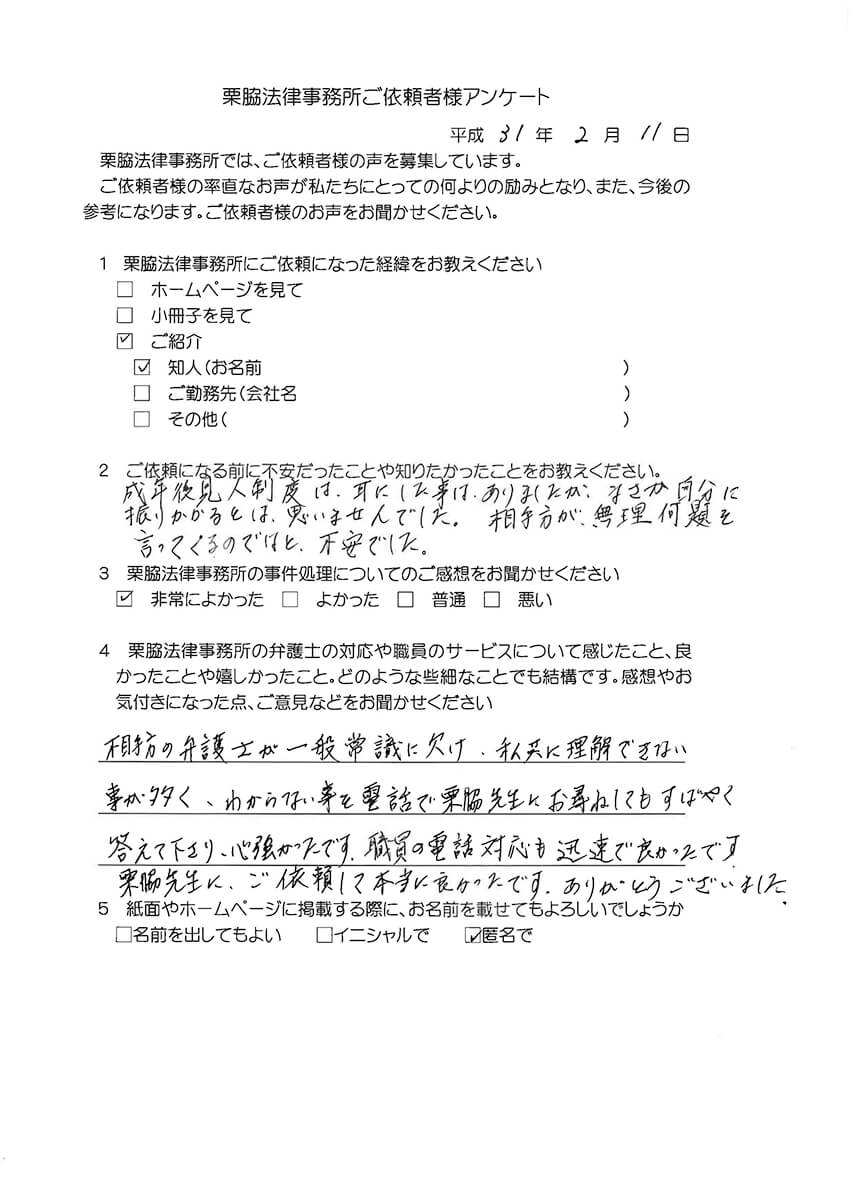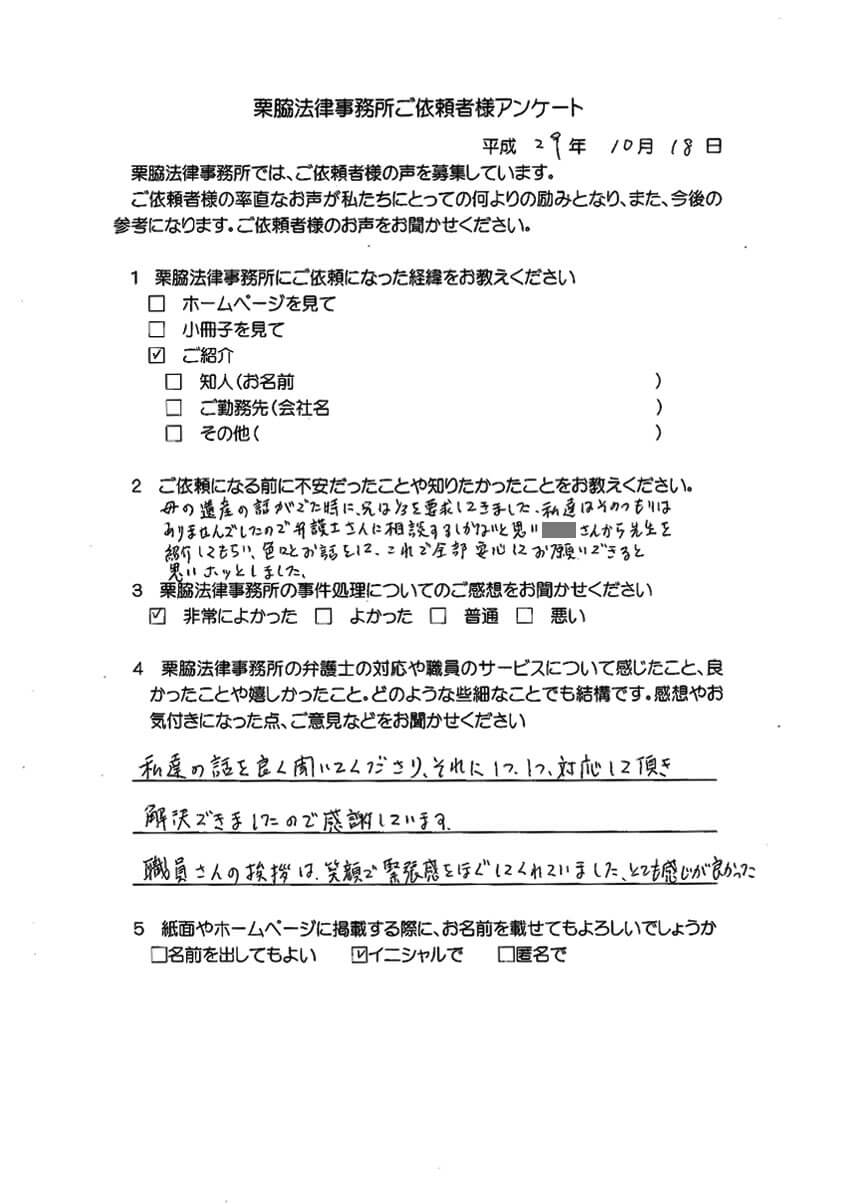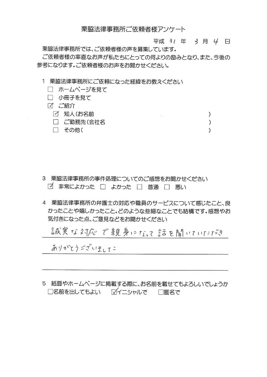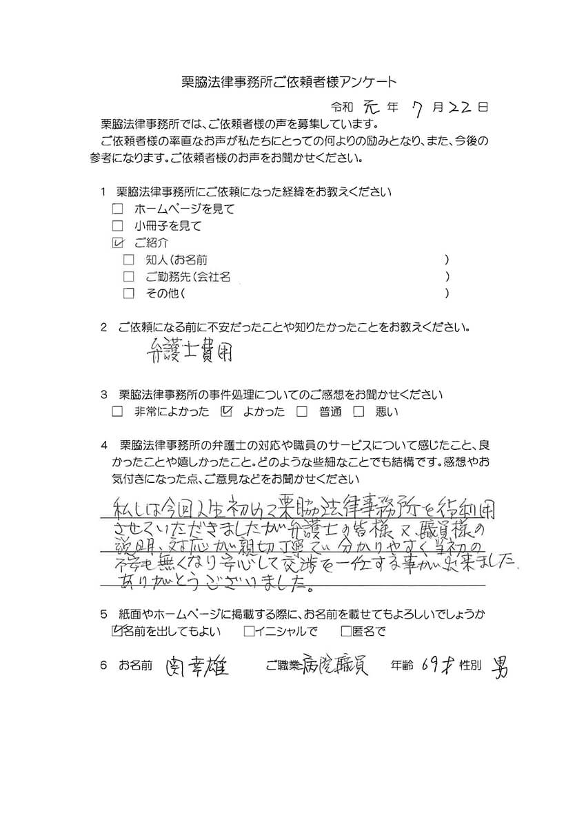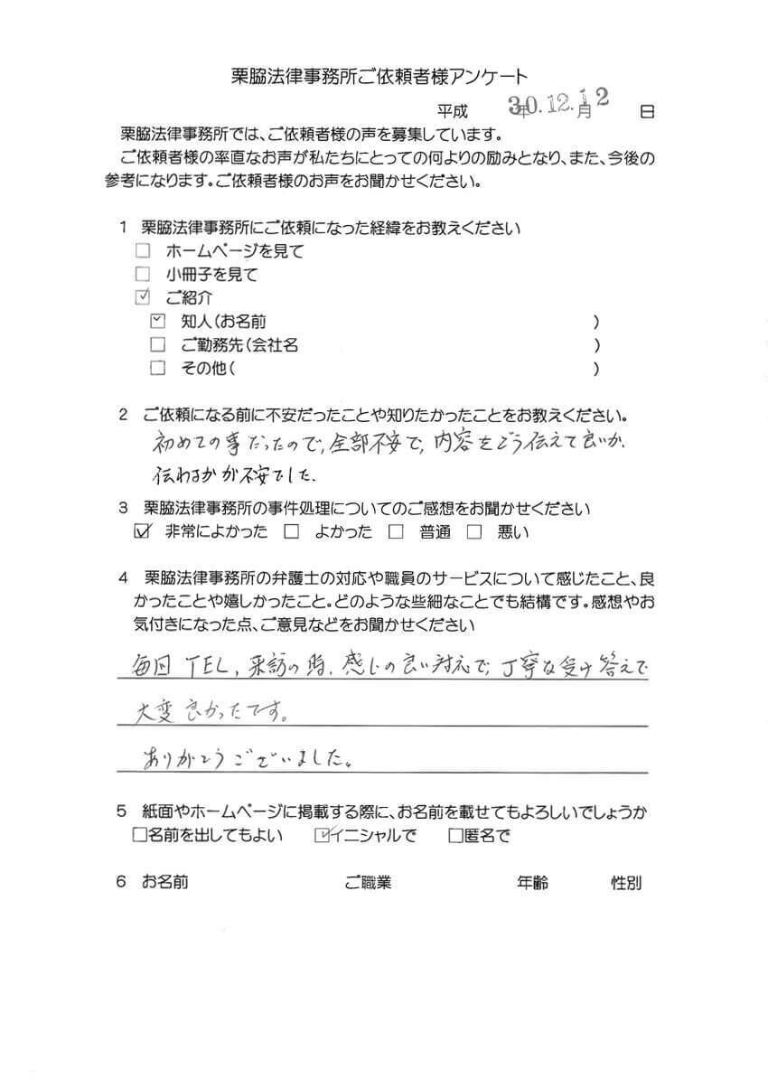 栗脇法律事務所へご依頼されたお客様から頂いた声を一部ご紹介いたします。